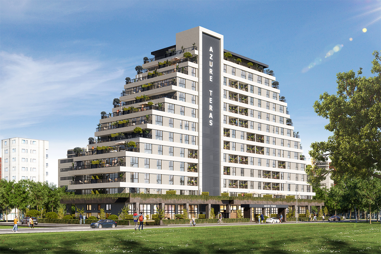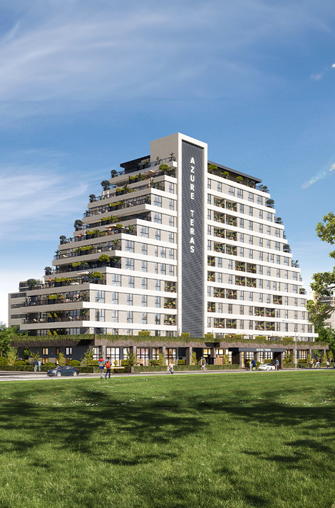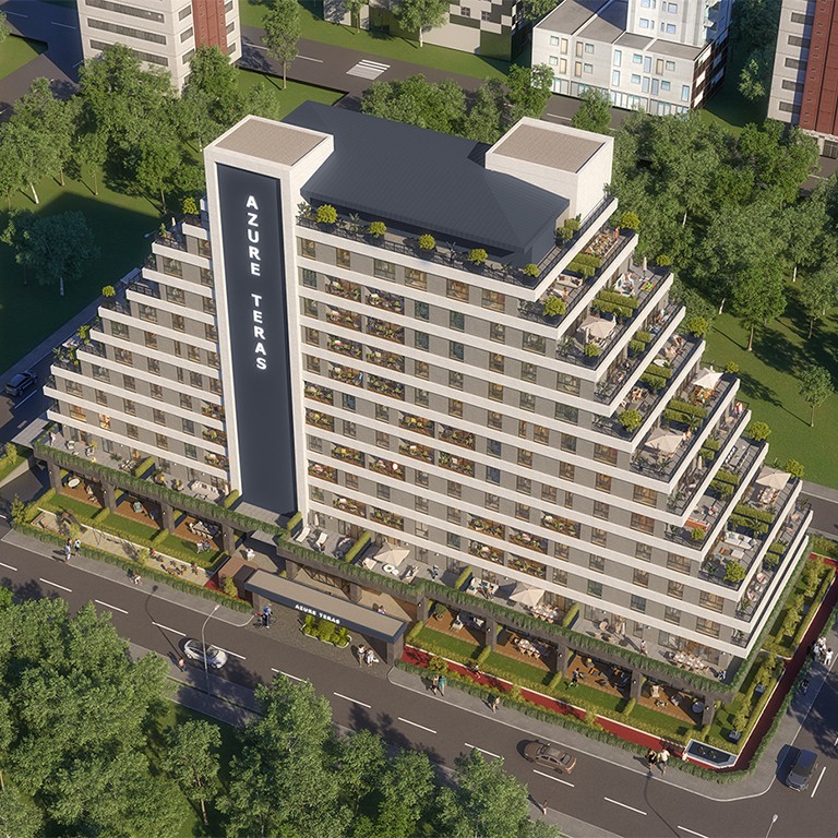 Azure Teras will consist of 116 apartments with unique architecture and spacious terraces, ranging from 1+1 type of apartment to 3+1, on an area of 23 thousand square meters. The project will meet all your necessities not only for a comfortable life but also as an investment opportunity.